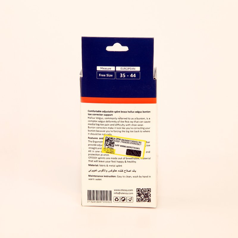 به دلیل دارا بودن استرپ قابل تنظیم، این محصول میتواند انگشت شست را صورت کنترل شده در راستای طبیعی خود قرار داده و ناهنجاری آن را اصلاح نماید.