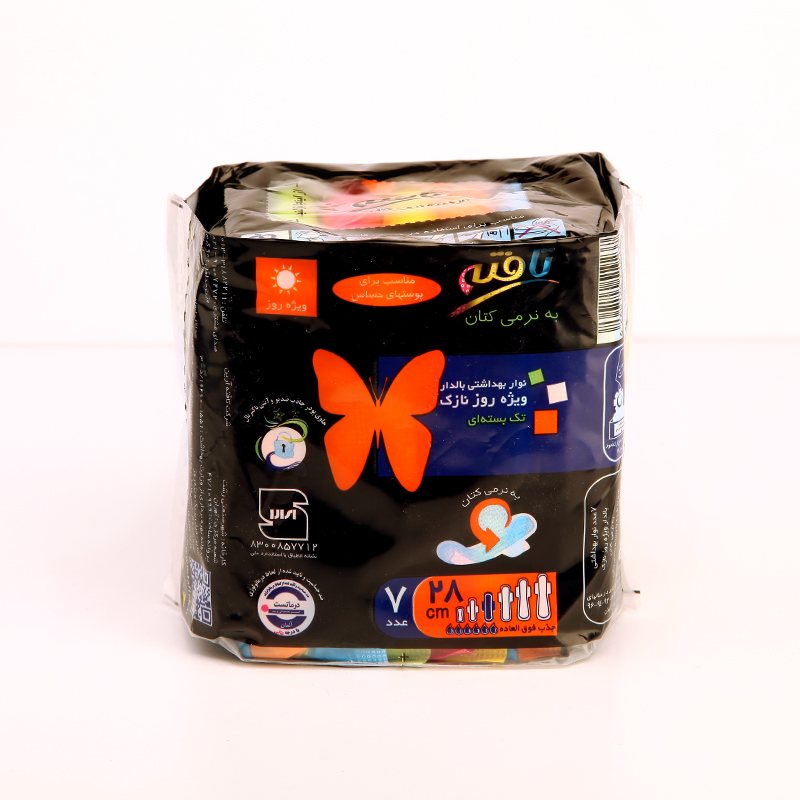 پد بهداشتی بالدار نازک تافته با رویه کتان تک بسته ای ویژه روز 7 عددی