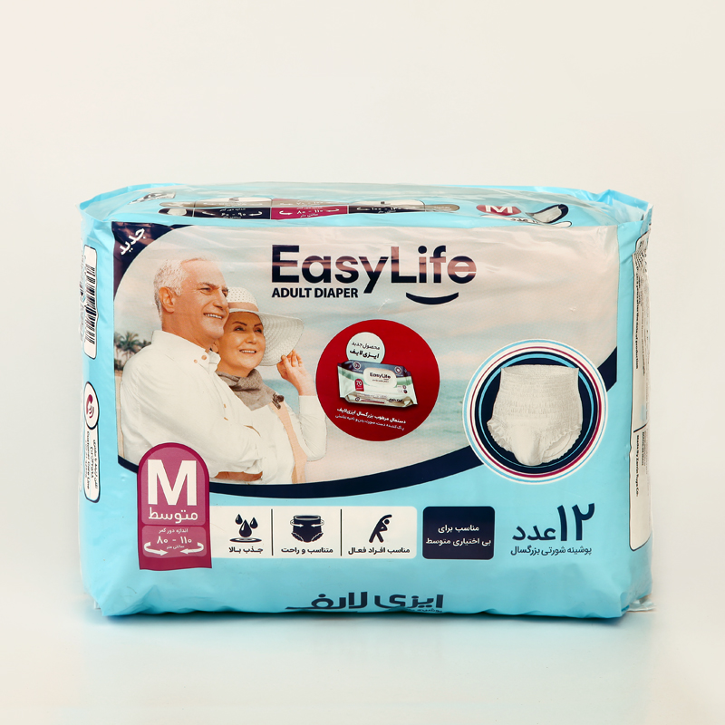 پوشک بزرگسال ایزی لایف شورتی سایز متوسط بسته ۱۲ عددی
