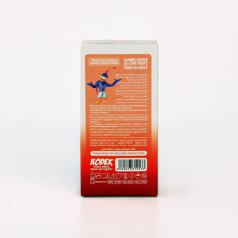 کاندوم گیم اور کدکس – کاندوم برند کدکس به عنوان برندی که با تکنولوژی برتر اروپا مدل جدید به نام کاندوم کدکس مدل گیم اور را معرفی بازار کرد که این کاندوم ویژه ، 4 مکانیزم جنسی را در خود قرار داده است .