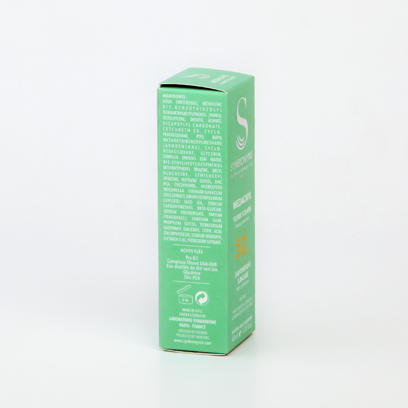 ضدآفتاب SYNBIONYME مدل Medacnyl SPF 50 یک فلوئید حرفهای و باکیفیت است که برای محافظت پیشرفته از پوست طراحی شده است. این محصول با بافتی فوقالعاده سبک و بدون چربی، مخصوص پوستهای مختلط تا چرب فرموله شده و بدون ایجاد براقیت یا احساس سنگینی، بهسرعت جذب میشود. فرمولاسیون آن با بهرهگیری از سیستم محافظتی چندگانه، از پوست در برابر پرتوهای مضر UVA و UVB، آلودگیهای محیطی و رادیکالهای آزاد محافظت میکند.
