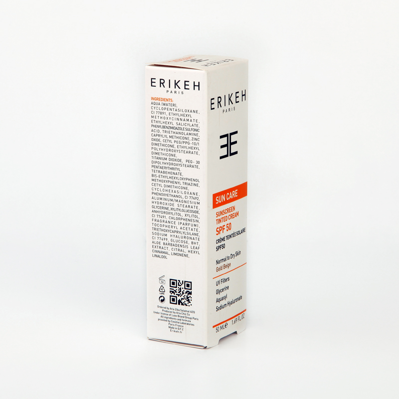 ضدآفتاب رنگی اریکه Erikeh SPF 50 مدل Gold Beige مناسب پوست نرمال تا خشک