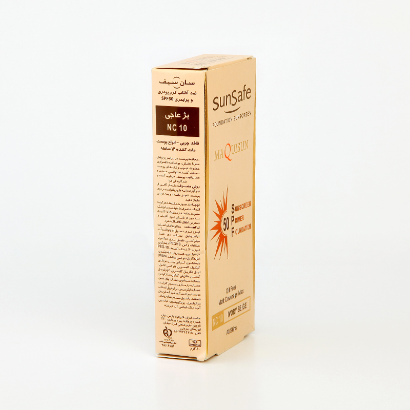 ضدآفتاب کرمپودری سانسیف MAQUISUN SPF50 – رنگ NC10 آیوری بژ (بدون چربی، پوشش مات و یکدست)