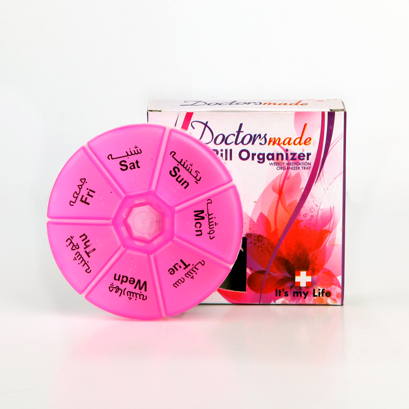 جا قرصی هفتگی چرخشی Doctorsmade یک ابزار کاربردی برای نظمدهی دقیق داروهای روزانه است که شما را از فراموشی یا مصرف اشتباه دارو نجات میدهد. این ارگانایزر دارای ۷ بخش تفکیکشده برای روزهای هفته است که هم به فارسی و هم انگلیسی علامتگذاری شدهاند تا استفاده از آن بسیار ساده و قابلفهم باشد. طراحی دایرهای و درب چرخشی آن، امکان دسترسی سریع به محفظه هر روز را فراهم میکند بدون آنکه بقیه قسمتها باز شوند. جنس پلاستیک محکم و سبک، آن را مناسب استفاده در خانه، محل کار، کیف یا سفر میسازد. این محصول انتخابی مناسب برای سالمندان، بیماران با مصرف روزانه دارو، یا هر فردی است که نظم در مصرف دارو برای او اهمیت دارد.