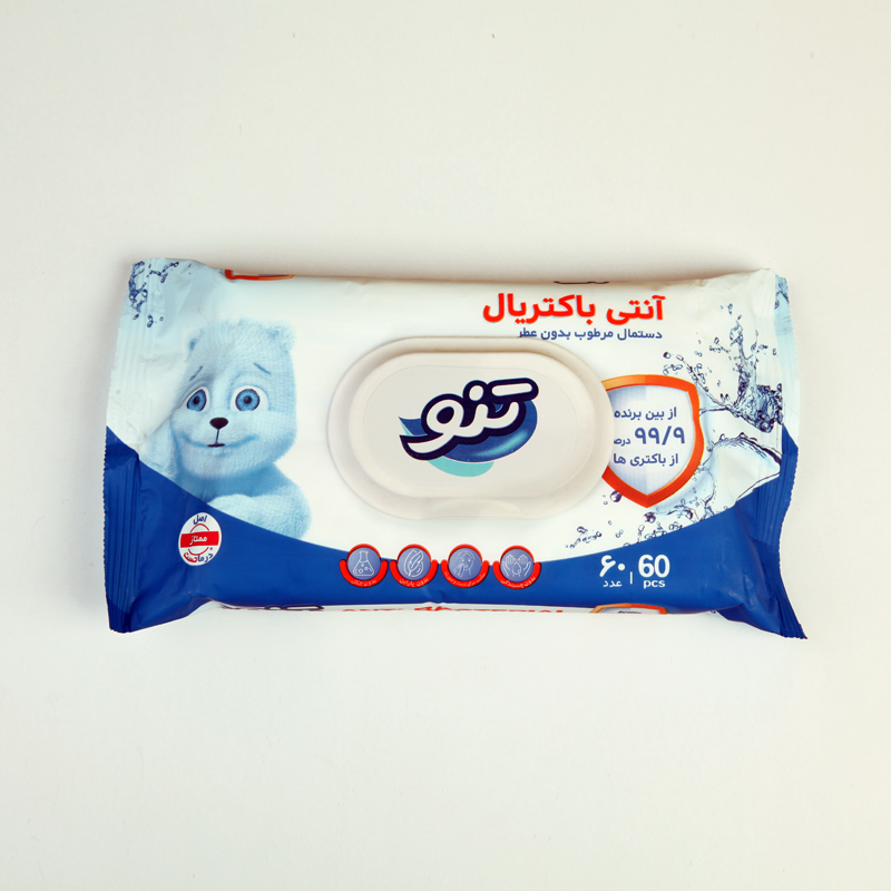 دستمال مرطوب آنتیباکتریال تنو Teno بدون عطر – بسته ۶۰ عددی