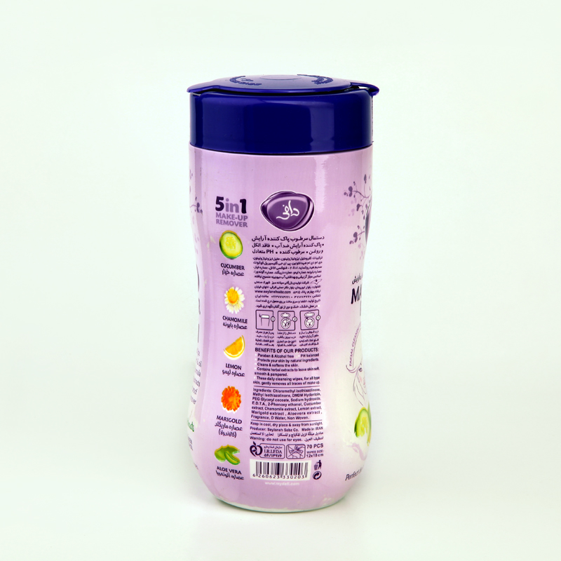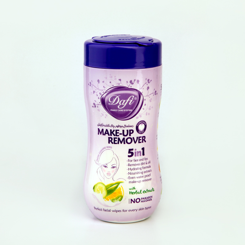 دستمال مرطوب پاککننده آرایش دافی Dafi مدل 5in1 با عصارههای گیاهی – بسته قوطیای