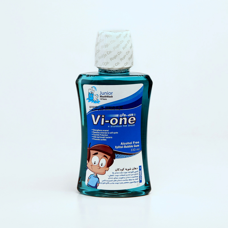 دهانشویه کودکان ویوان Vi-one Junior بدون الکل با طعم بابلگام – مناسب ۶ سال به بالا – حجم 330 میلیلیتر