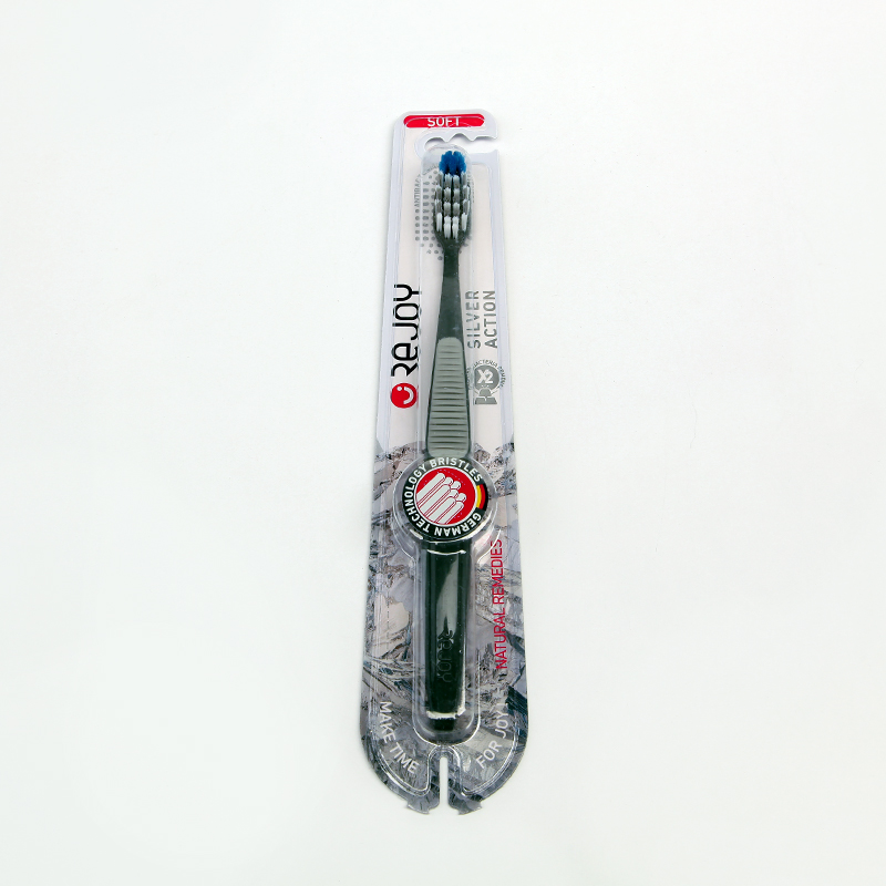 مسواک ریجوی Silver Action با برس نرم، مناسب برای پاکسازی ملایم دندانها و لثهها؛ مجهز به الیاف آنتیباکتریال با تکنولوژی آلمانی.