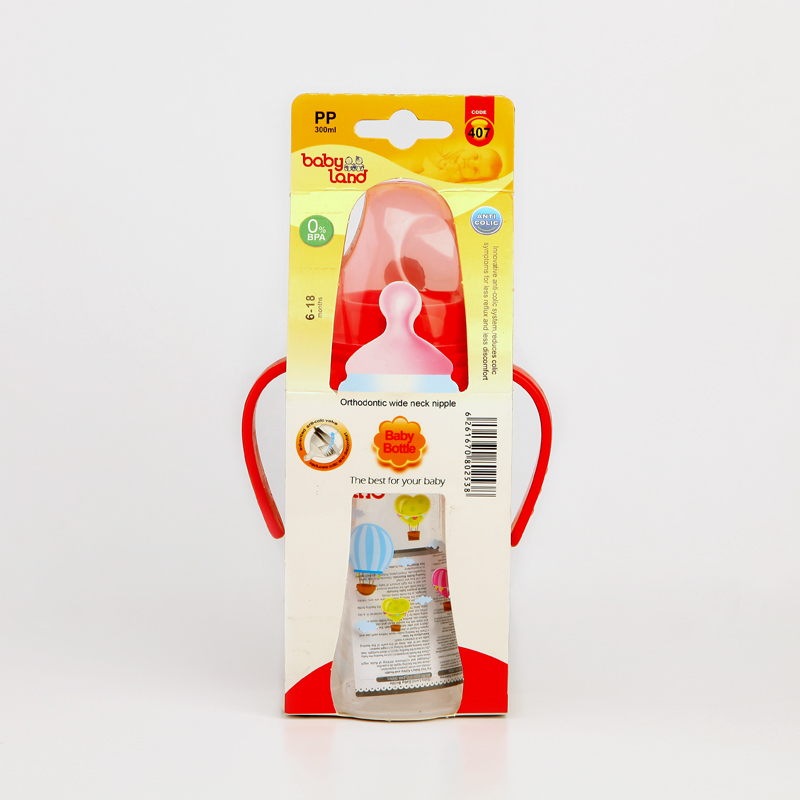 شیشهشیر بیبیلند (Baby Land) مدل 407 – 300 میلیلیتر – سرشیشه ارتودنسی دهانهگشاد + دستهدار