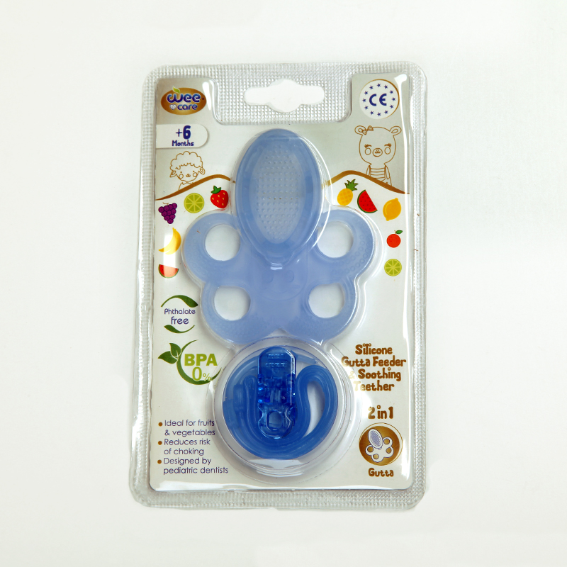 دندونی و فیدر سیلیکونی Wee Care مدل Gutta یک محصول کاربردی برای نوزادان بالای ۶ ماه است که هم به عنوان دندونی ضدخارش و هم فیدر میوه عمل میکند.