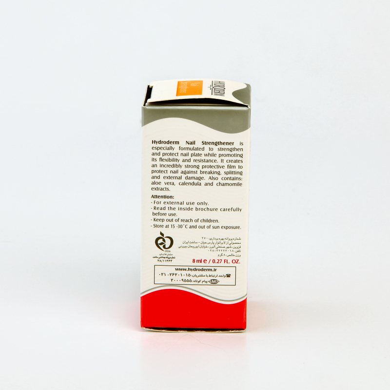 محلول استحکامبخش ناخن هیدرودرم با ترکیبات مغذی و تقویتکننده، ناخنهای شکننده و لایهلایه را ترمیم کرده و استحکام و مقاومت طبیعی آنها را افزایش میدهد.