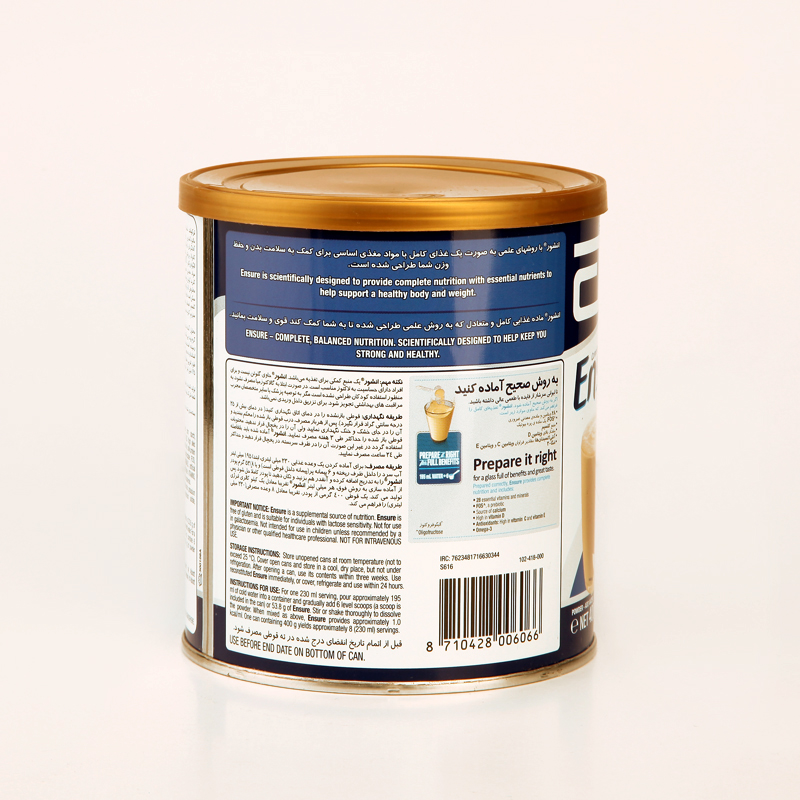 پودر انشور (Ensure) پریبیوتیک طعم وانیل – ۴۰۰ گرم تغذیه کامل و متعادل برای بزرگسالان