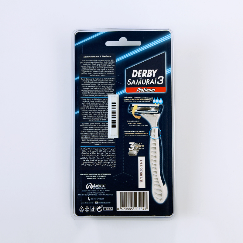 تیغ اصلاح دربی مدل Samurai 3 Platinum – سهتیغه، بسته ۳ عددی