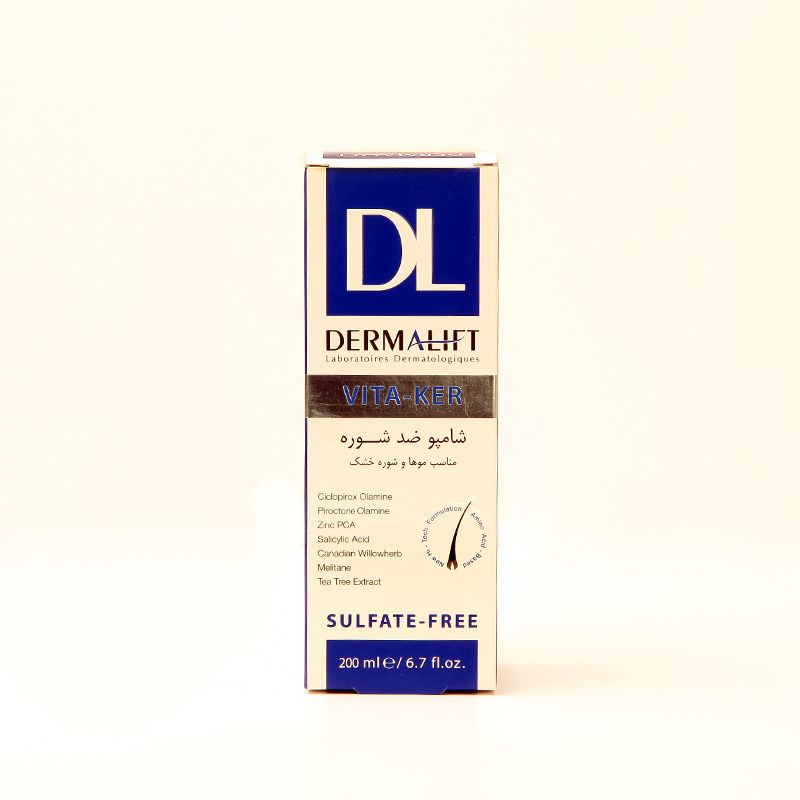 شامپو ضد شوره درمالیفت (Dermalift) مدل VITA-KER مناسب شوره خشک – سولفاتفری – 200 میل