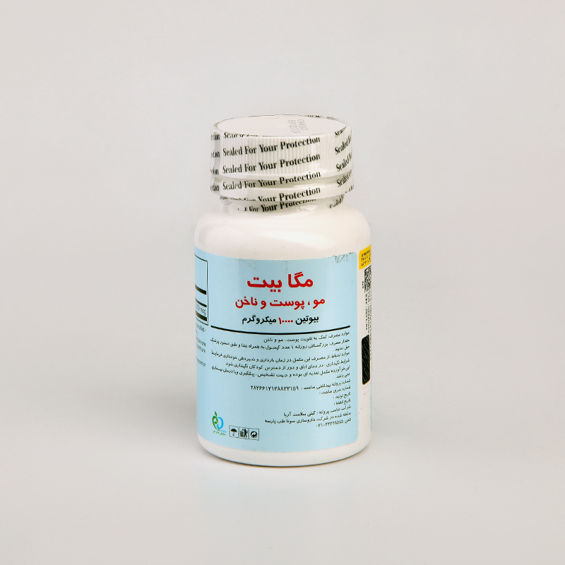 مکمل بیوتین ۱۰۰۰۰ میکروگرم برونسون Mega Bit – تقویت قوی مو، پوست و ناخن (۶۰ عددی)