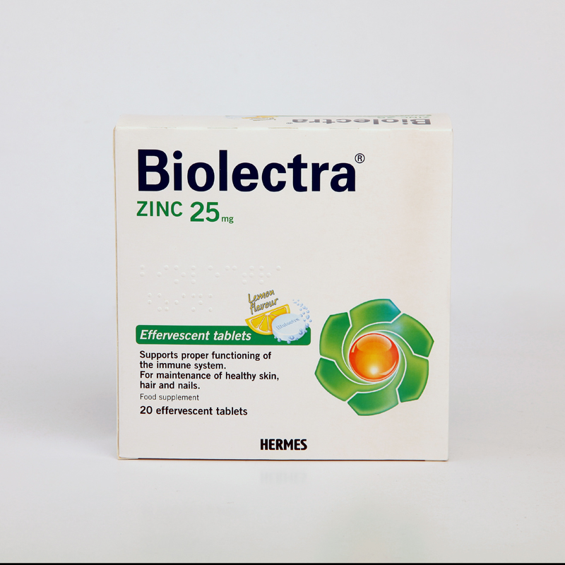 قرص جوشان بایولکترا زینک ۲۵ میلیگرم هرمس – تقویت سیستم ایمنی و سلامت پوست (۳۰ عددی)