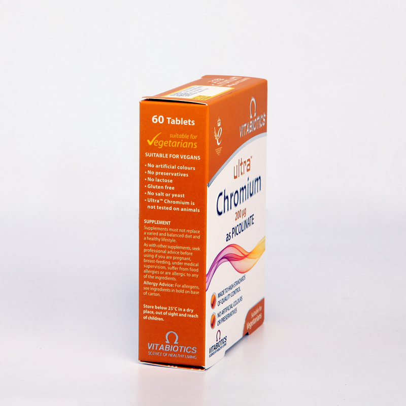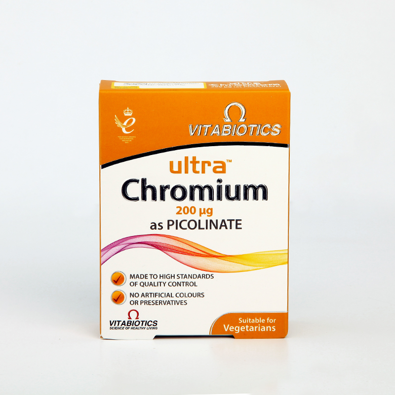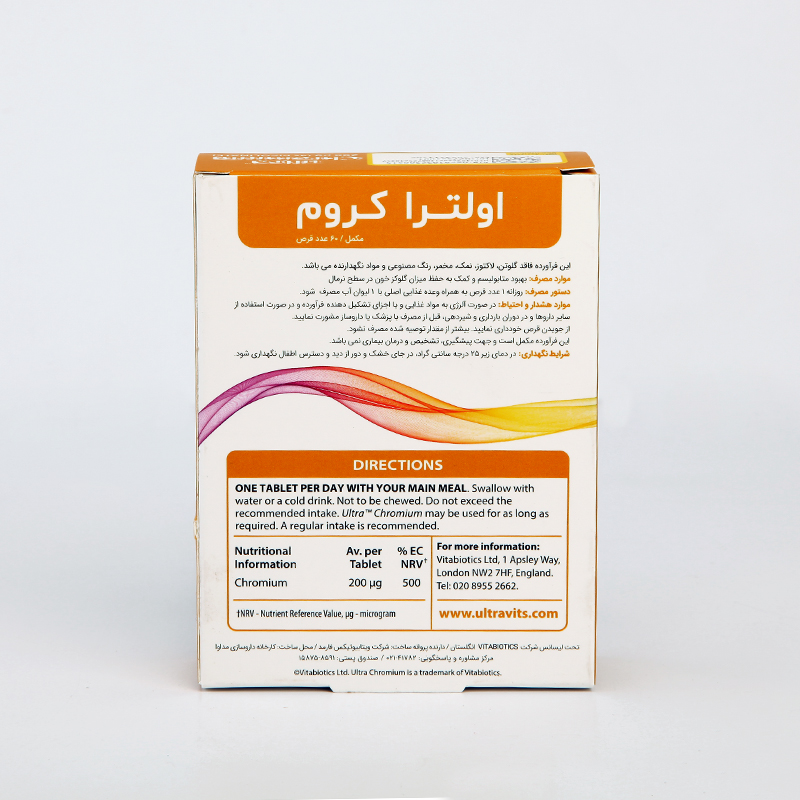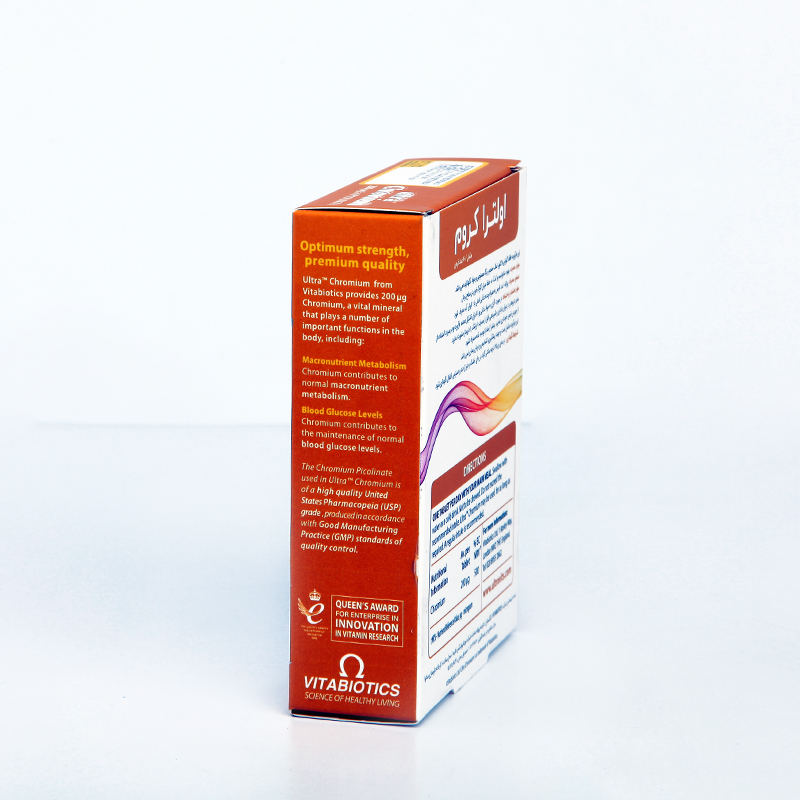 قرص Ultra Chromium از برند معتبر Vitabiotics با استفاده از فرم پیکولینات کرومیوم – قابلجذبترین فرم این ماده معدنی – به تنظیم بهتر قند خون و افزایش حساسیت سلولها به انسولین کمک میکند. این محصول برای افرادی که دچار نوسانات قند خون، پرخوری عصبی یا تمایل زیاد به مصرف شیرینی هستند بسیار مناسب است. کرومیوم همچنین نقش مهمی در بهبود متابولیسم چربی و قند دارد و به مدیریت وزن کمک میکند. این مکمل فاقد رنگ و نگهدارنده مصنوعی بوده و کیفیت بالای ساخت آن مطابق استانداردهای کنترل کیفی ویتابیوتیکس است. مناسب برای گیاهخواران.