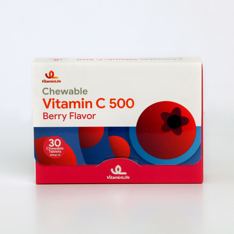 قرص جویدنی Vitamin C 500 VitaminLife (Berry Flavor) یک مکمل تغذیهای مؤثر و خوشخوراک است که هر قرص آن حاوی ۵۰۰ میلیگرم ویتامین C میباشد. ویتامین C نقش مهمی در تقویت سیستم ایمنی بدن، مقابله با رادیکالهای آزاد، کاهش شدت و مدت سرماخوردگی و افزایش جذب آهن ایفا میکند.