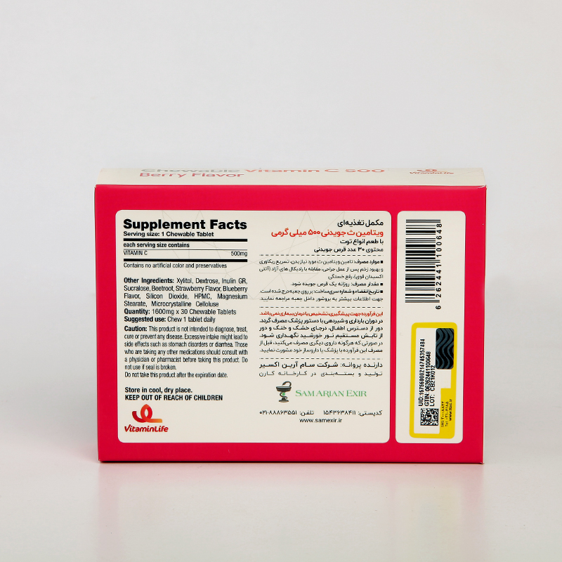 نام محصول: Chewable Vitamin C 500 Berry Flavor